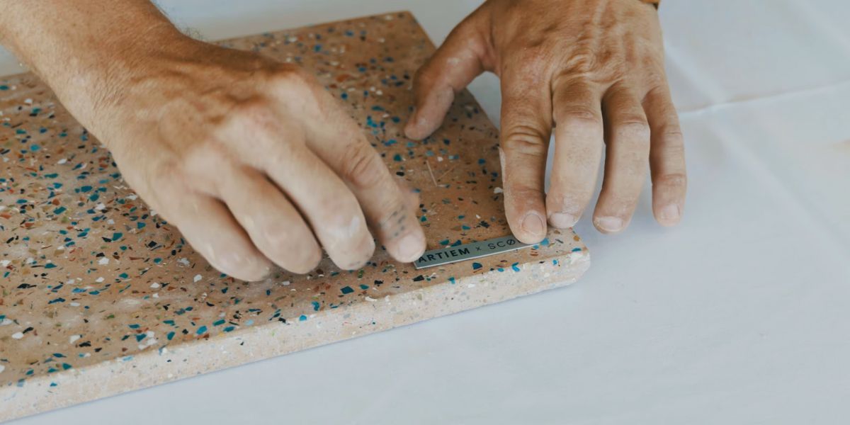 Todo comenzó con una pregunta: ¿cómo podemos devolver algo al entorno que nos ha dado tanto? En ARTIEM Hotels, esa pregunta nos llevó a colaborar con Scøne Design, un taller local con un profundo respeto por la sostenibilidad. Pablo Vizmanos, el alma detrás de Scøne, ha dedicado su proyecto a transformar lo que otros consideran desechos en arte funcional. En sus manos, los microplásticos que una vez asfixiaban nuestros mares se mezclan con cemento y se convierten en objetos resistentes, útiles y hermosos. A esto le hemos añadido los antiguos recipientes de jabón de ARTIEM, desechados en los últimos años.