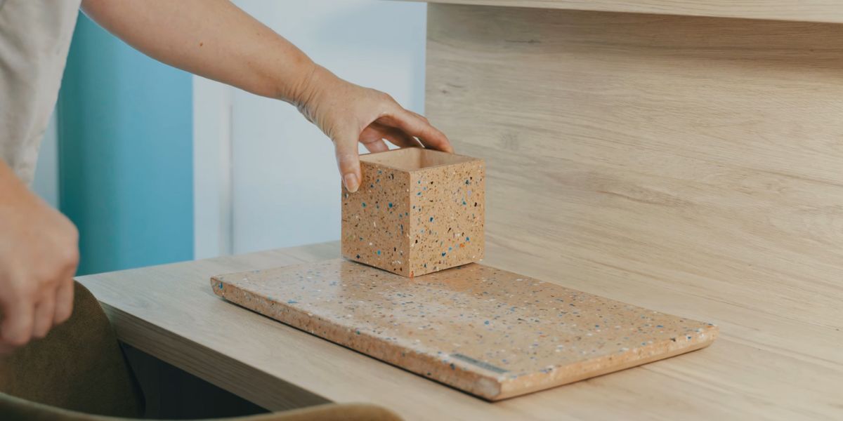 Scøne Design, un artesano local de Menorca, ha sido clave en este proyecto. Con una pasión por la sostenibilidad, ha trabajado incansablemente para integrar los microplásticos y los recipientes reciclados con el cemento, creando un producto final que es tanto resistente como estéticamente único.