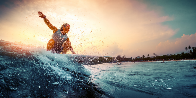 Deslízate sobre las olas del mar con tu tabla y disfruta de la sensación de adrenalina. El surf es uno de los deportes más excitantes y divertidos para practicar, sobre todo, en verano. Cualquiera puede probarlo aunque se recomienda tomar unas clases al principio para aprender a levantarte sobre la tabla y conocer el funcionamiento de las corrientes.