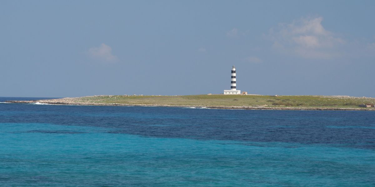 Es una de las zonas más azules del mar de Menorca, con la pequeña Isla del Aire y su faro como vista principal.