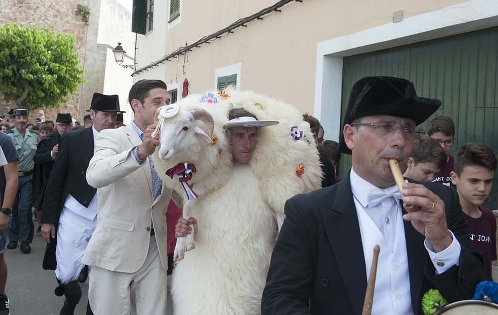 In Ciutadella, the festival starts on the Sunday before St. John’s Day (24th of June), and St. John the Baptist comes to life as s’homo des be, a figure representing the apostle who carries a lamb and passes through the streets inviting all the horsemen to attend the festivities on the 23rd and 24th of June. According to popular tradition, touching es be brings good luck all the year.