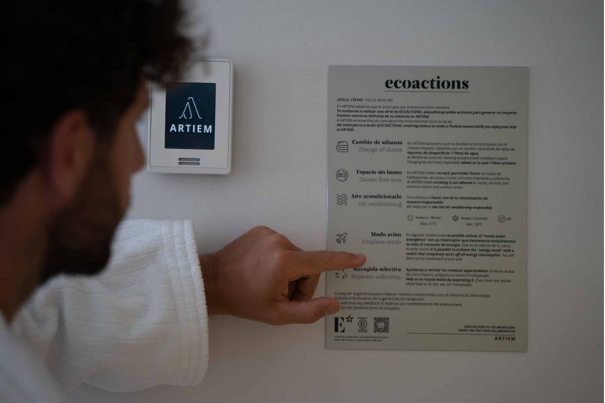 Our philosophy goes beyond offering you a memorable holiday. We are also concerned about the environment in which we live. We are proud to be a hotel chain committed to sustainability. Through practices such as selective waste collection, responsible use of water and energy, and respect for nature, we strive to minimise our impact on the planet. By choosing ARTIEM, you will not only enjoy an exceptional experience, but also be contributing to preserving our beautiful environment for future generations.