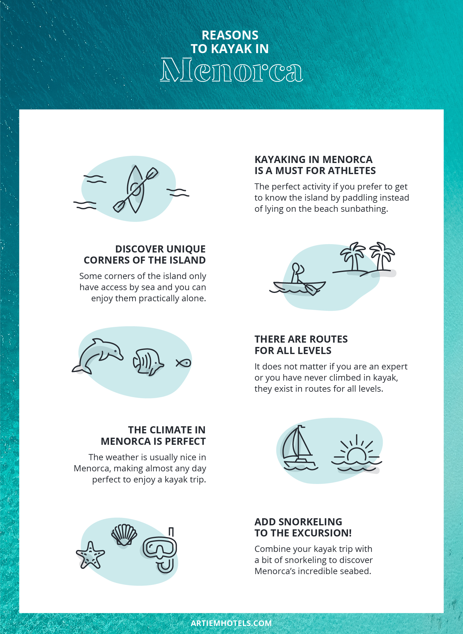 We´re sure you will love getting to know Menorca by kayak! But, in case you´re still not sure, we want to tell you all the reasons why signing up for this activity is a must!: